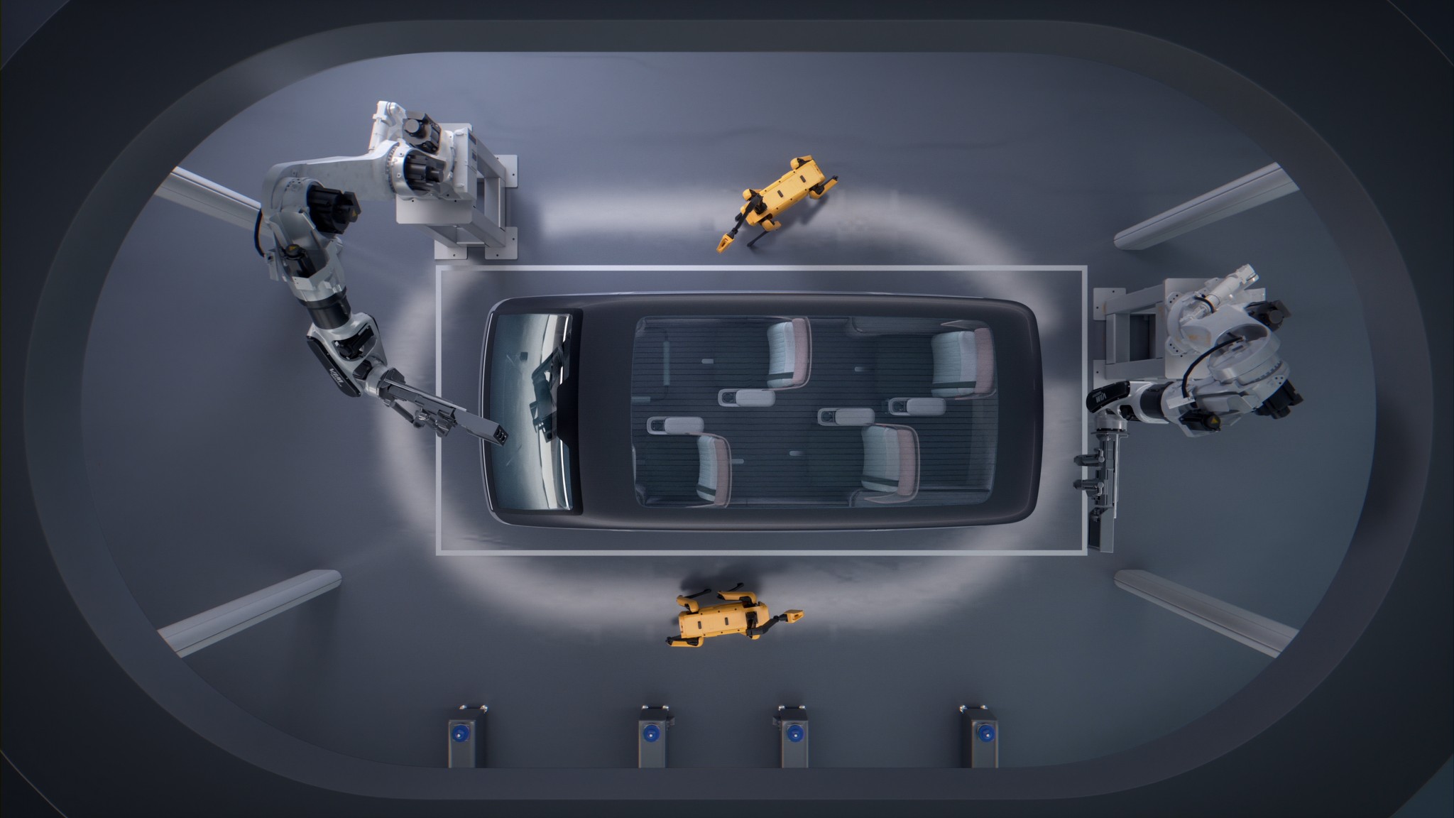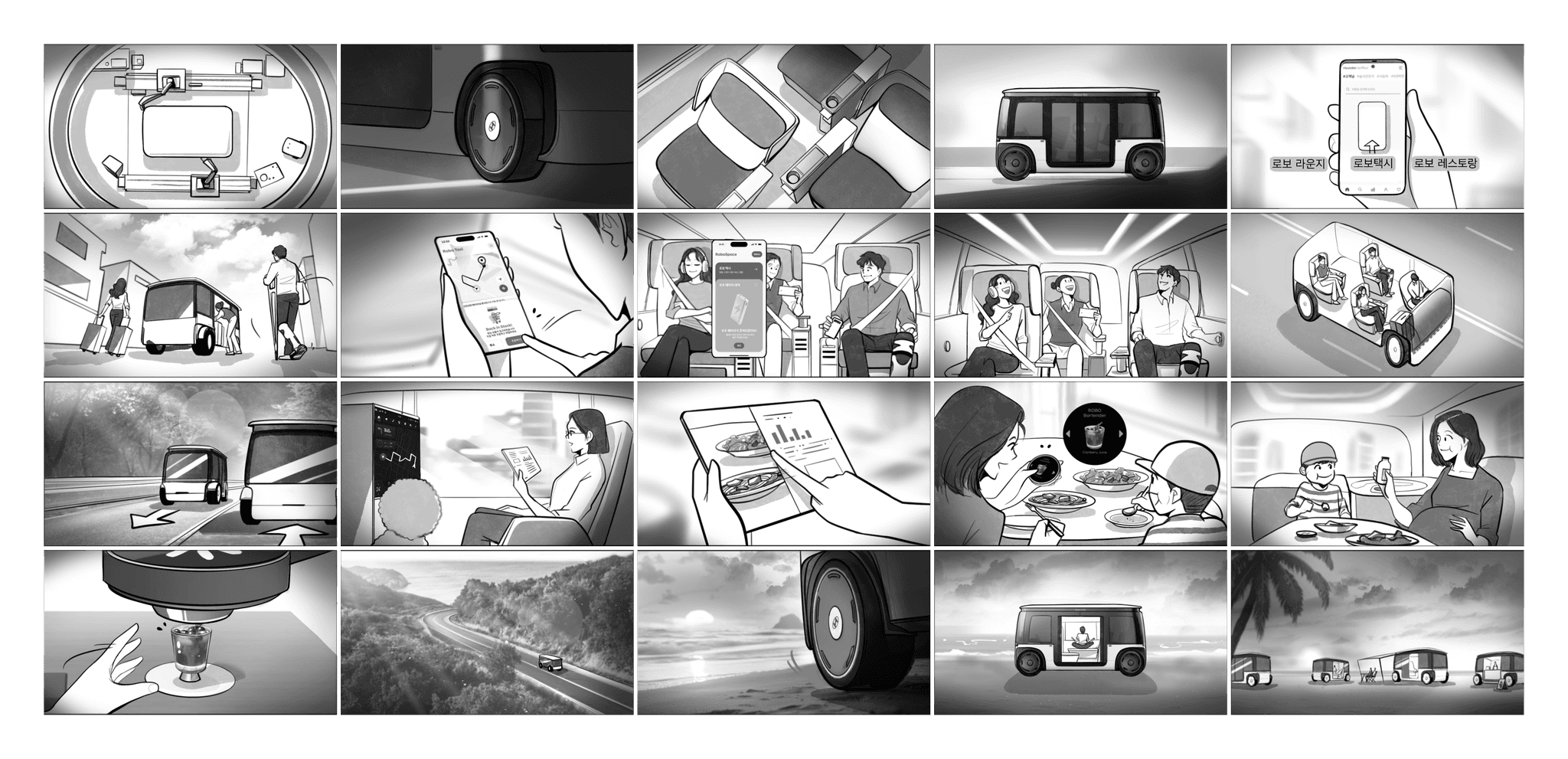 로보틱 스페이스는 탑승자의 필요에 따라 택시, 레스토랑, 라운지로 전환되는 미래형 모빌리티 플랫폼입니다.
